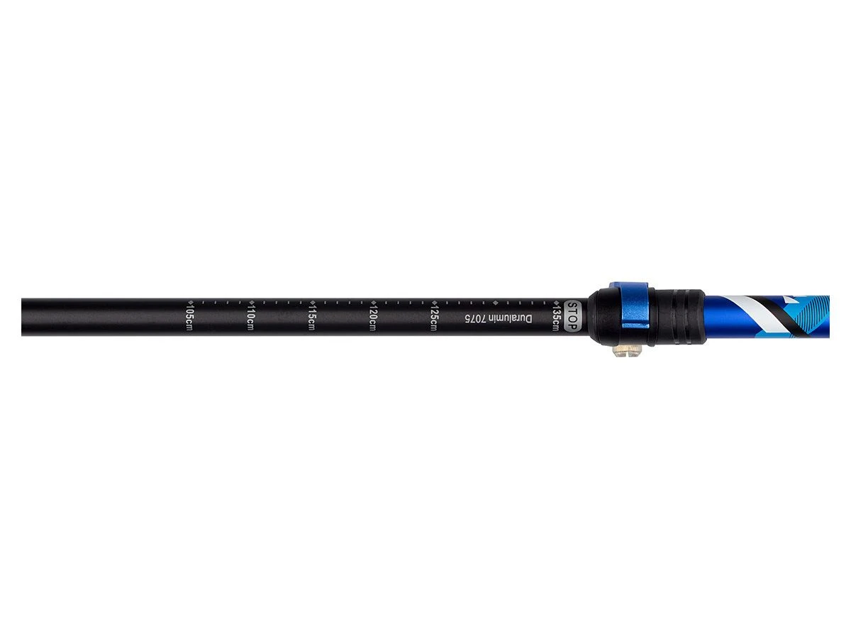 Dankzij de telescopische constructie met klikvergrendeling is de lengte verstelbaar van 63 tot 135 cm. Voor extra gemak beschikt de stok over een zachte, gevulde polsband, een trekking disc voor grip in modder en een sneeuw disc voor gebruik in de winter.