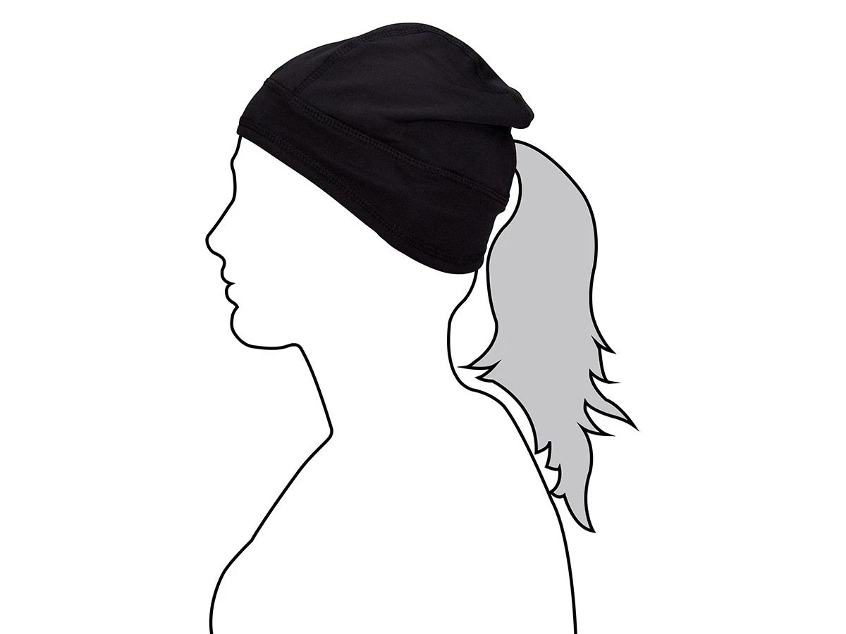 De muts is gemaakt van 95% polyester en 5% elastaan. De sportmuts is voorzien van een geruwde binnenkant en heeft een opening voor het haar.