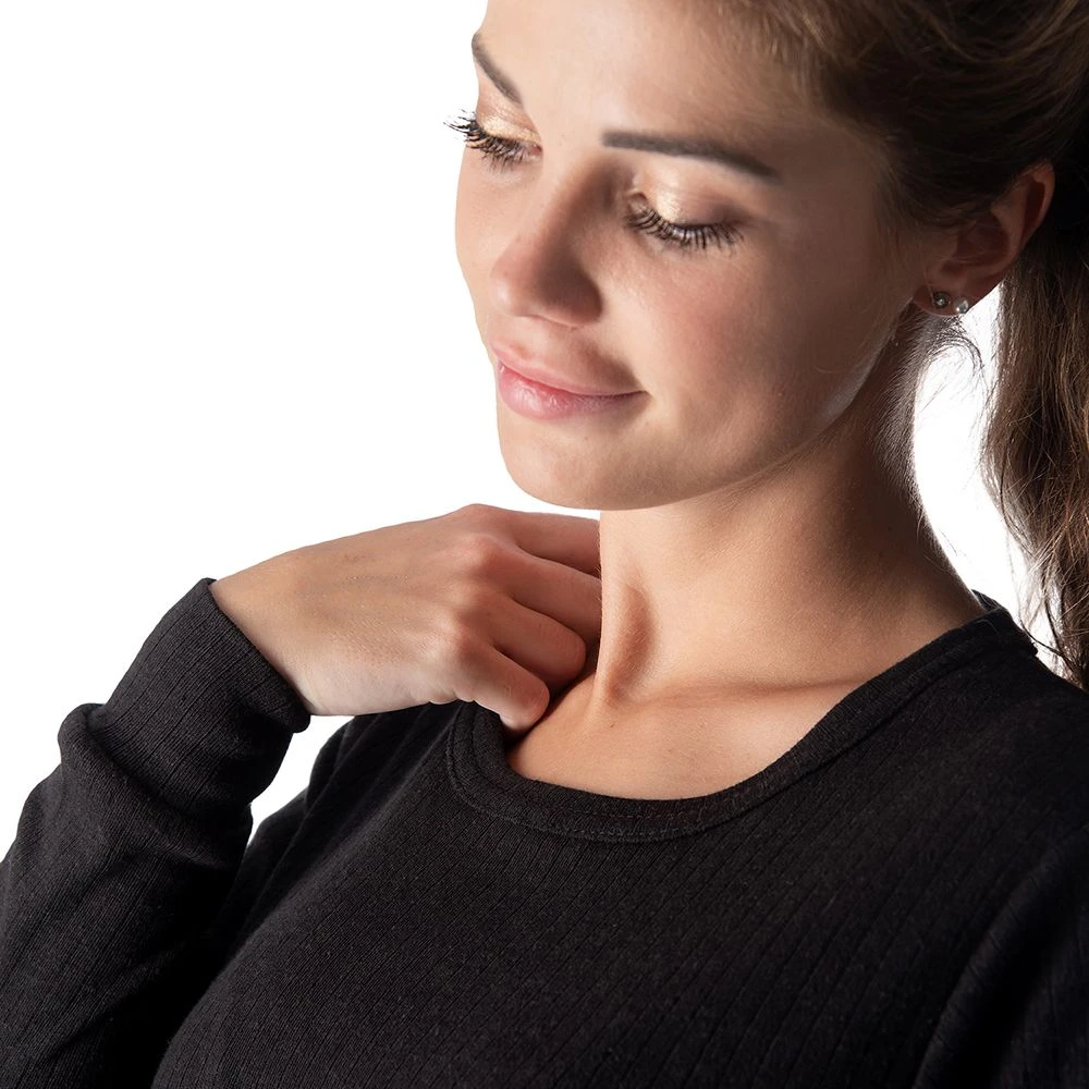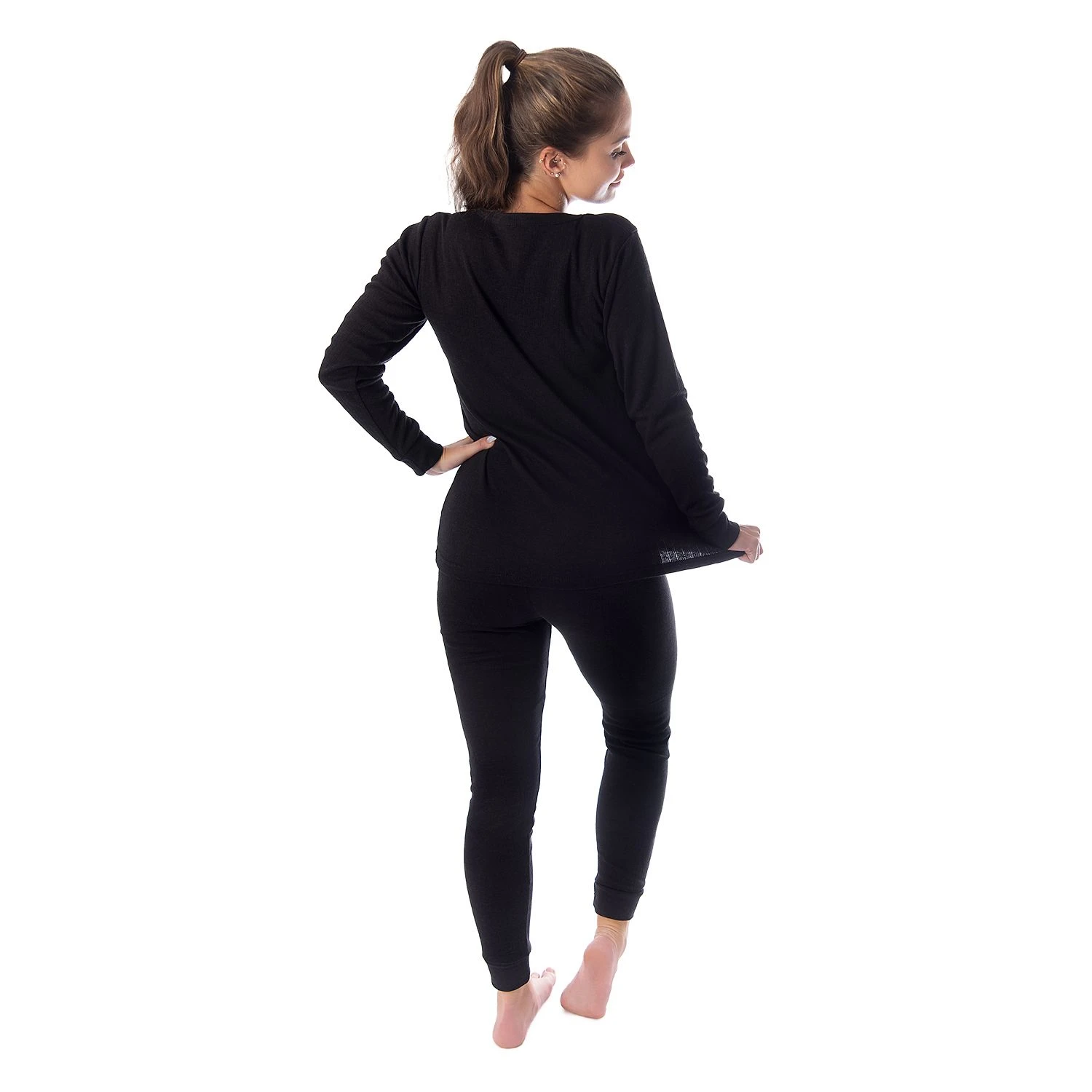 Deze ondergoedset voor dames, bestaande uit twee lange onderbroeken en twee onderhemden met lange mouwen, overtuigt door een zeer hoog, comfortabel draagcomfort. Door de gemêleerde stof met fijne ribstructuur krijg je een ademend en vochtregulerend onderbroekje dat huidvriendelijk en zeer aangenaam is op de huid. De zachte binnenkant van het ondergoed zorgt voor aangename warmte en een hoog draagcomfort. Het thermisch ondergoed is niet alleen geschikt voor skiën en snowboarden, maar ook voor andere buitenactiviteiten op koude herfst- en winterdagen. De set is verkrijgbaar in de kleuren creme, grijs en lichtblauw.