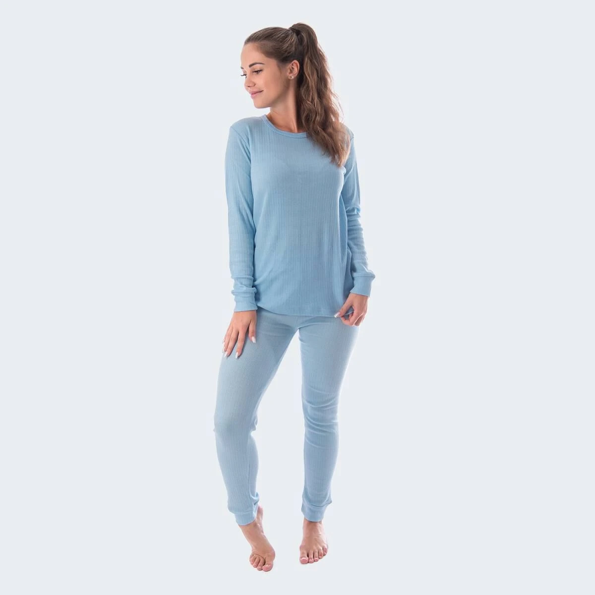 Deze ondergoedset voor dames, bestaande uit een lange onderbroek en een ondershirt met lange mouwen, is zeer comfortabel om te dragen. Door de gemêleerde stof met fijne ribstructuur krijg je een ademende en vochtregulerende ondergoedset die huidvriendelijk en zeer aangenaam is voor de huid. De pluizige binnenkant van het ondergoed zorgt voor aangename warmte en een hoog draagcomfort. Het thermisch ondergoed is niet alleen geschikt voor skiën en snowboarden, maar ook voor andere buitenactiviteiten op koude herfst- en winterdagen. De set is verkrijgbaar in de kleuren crème, grijs en lichtblauw.