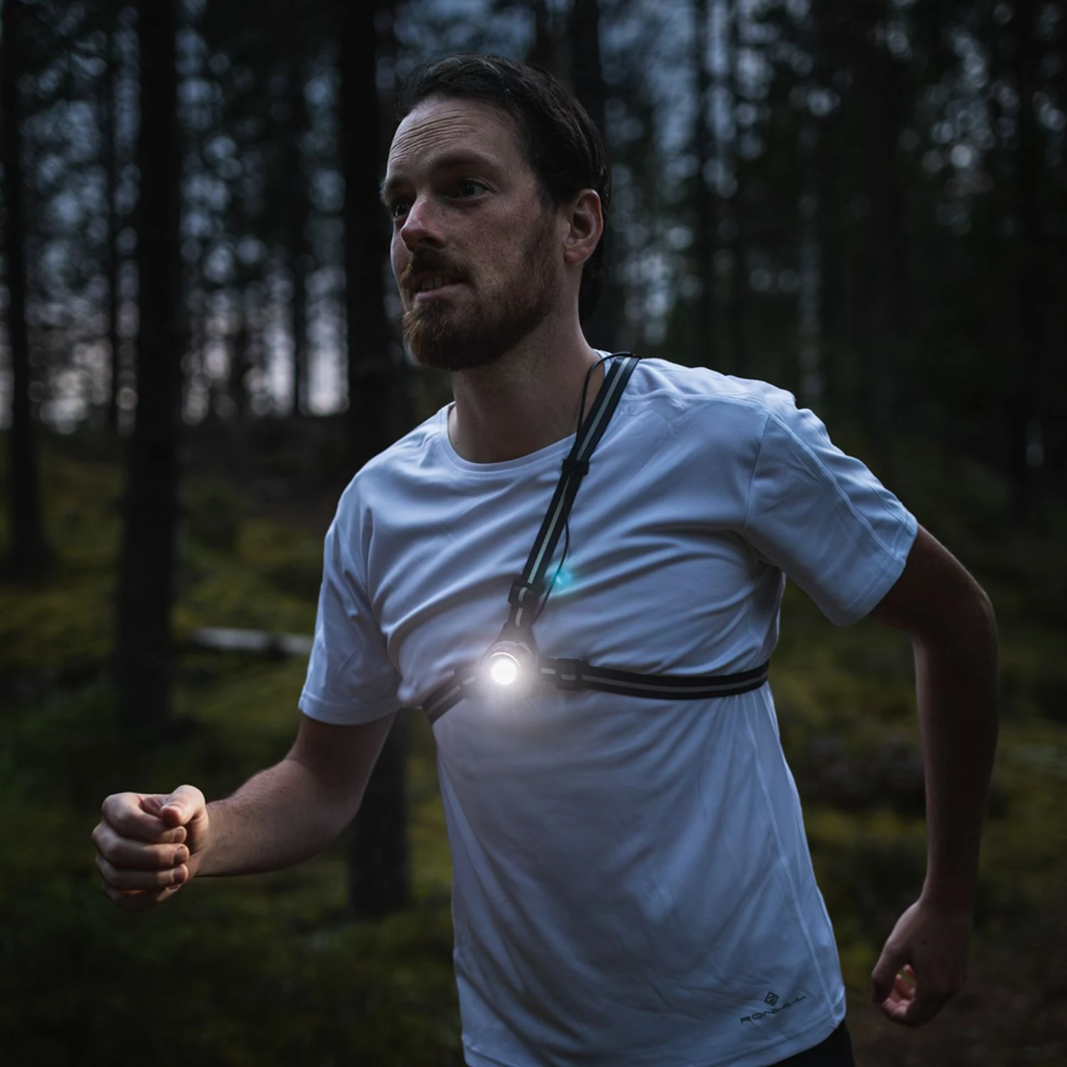 Met de 500 lumen sterke voorlamp wordt jouw looproute helder belicht tot zeker 20 meter, zo is het looppad goed verlicht en voorkom je ongelukken. De voorlamp is verstelbaar, zo bepaal jij zelf in welke hoek het naar voren of op de grond schijnt. De voorlamp beschikt daarnaast over twee verschillende standen; groot en klein licht.