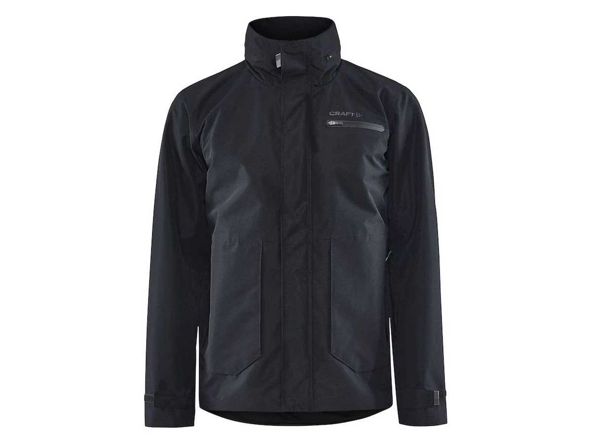 Verder heeft de jas klittenbandsluitingen bij de mouwen, een borstzak met rits, twee handzakken met rits en reflecterende details.