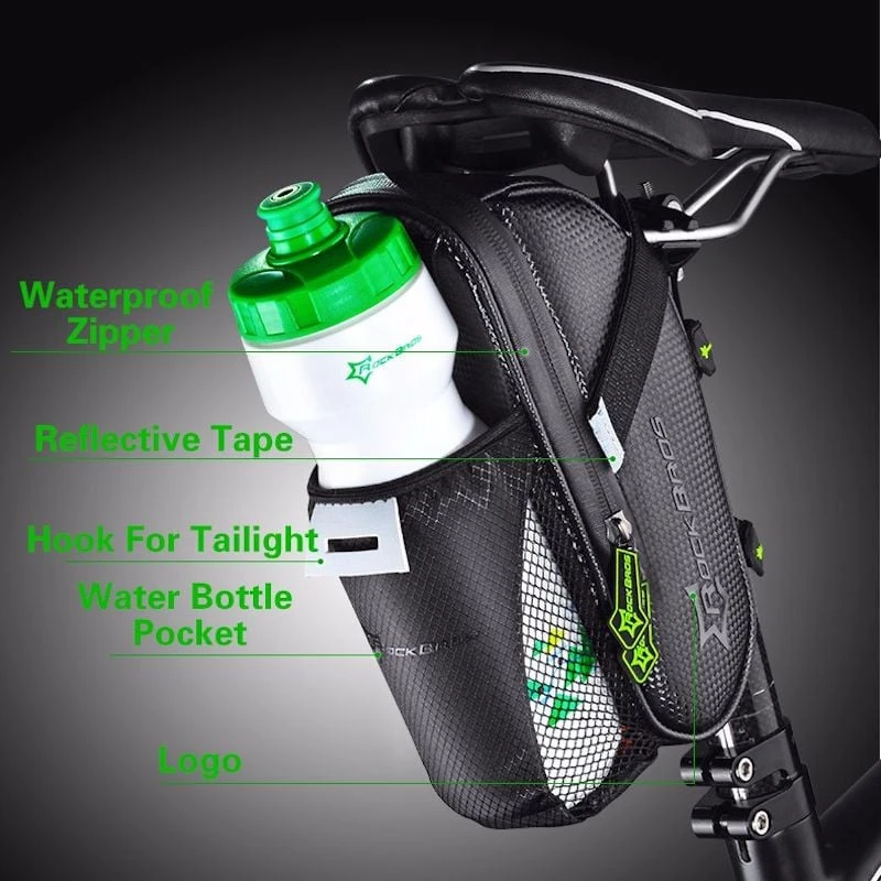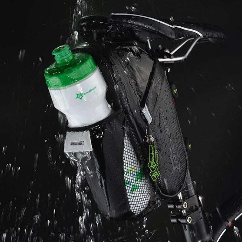 Je hoeft je geen zorgen te maken alshet begint te regenen. Want deze zadeltas is gemaakt van waterbestendig materiaal. Je spullen zullen dus gewoon droog altijd blijven. De voordelen van deze Waterbestendige Zadeltas met bidonhouder op een rijtje: Luxe Pro uitvoering voor extra gebruiks comfort.