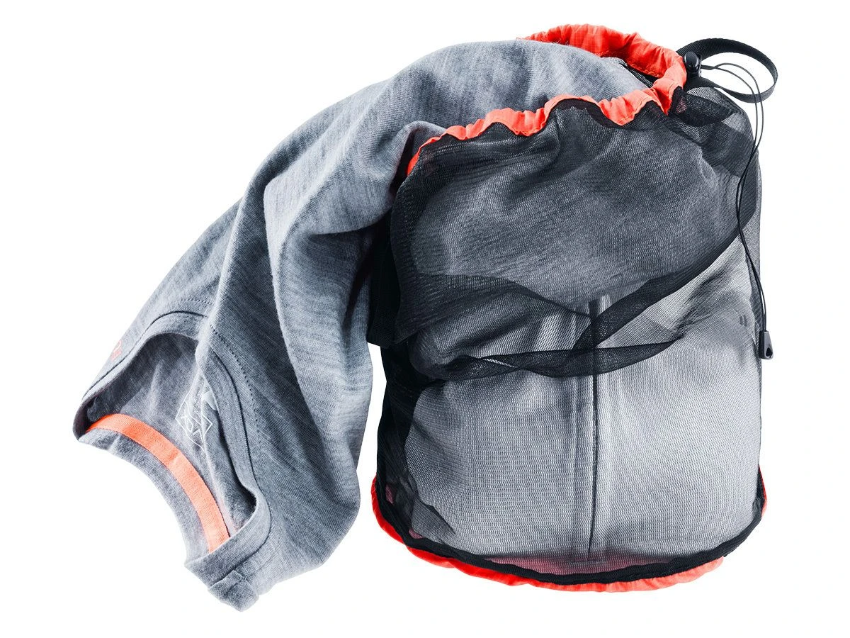 Deze opberger is gemaakt uit licht mesh materiaal van een hoge kwaliteit en voorzien van een praktisch sluitsysteem, een vuilbestendige onderkant, een trekkoord, een handvat en twee praktische ophanglussen.