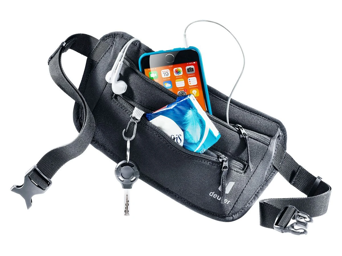 De heuptas is een lichtgewicht, vormt zichzelf naar je lichaam en is onder andere voorzien van een hoofdvak met rits, een sleutelclip, een uitgang voor een koptelefoon en twee mesh binnenvakken.