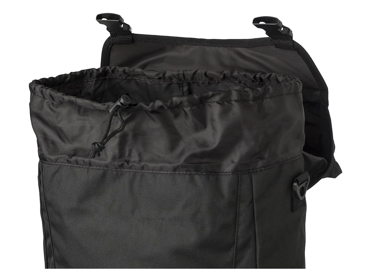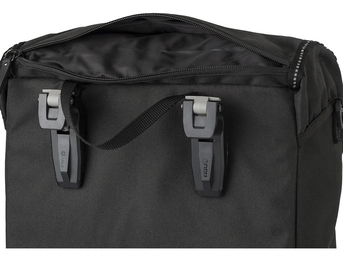 Gemaakt van waterafstotend gerecycled polyester, beschermt de tas je spullen tegen regen en vuil. Dankzij de Click’nGo Fixed Haken en extra velcro-bevestiging blijft de tas stevig op de bagagedrager zitten.