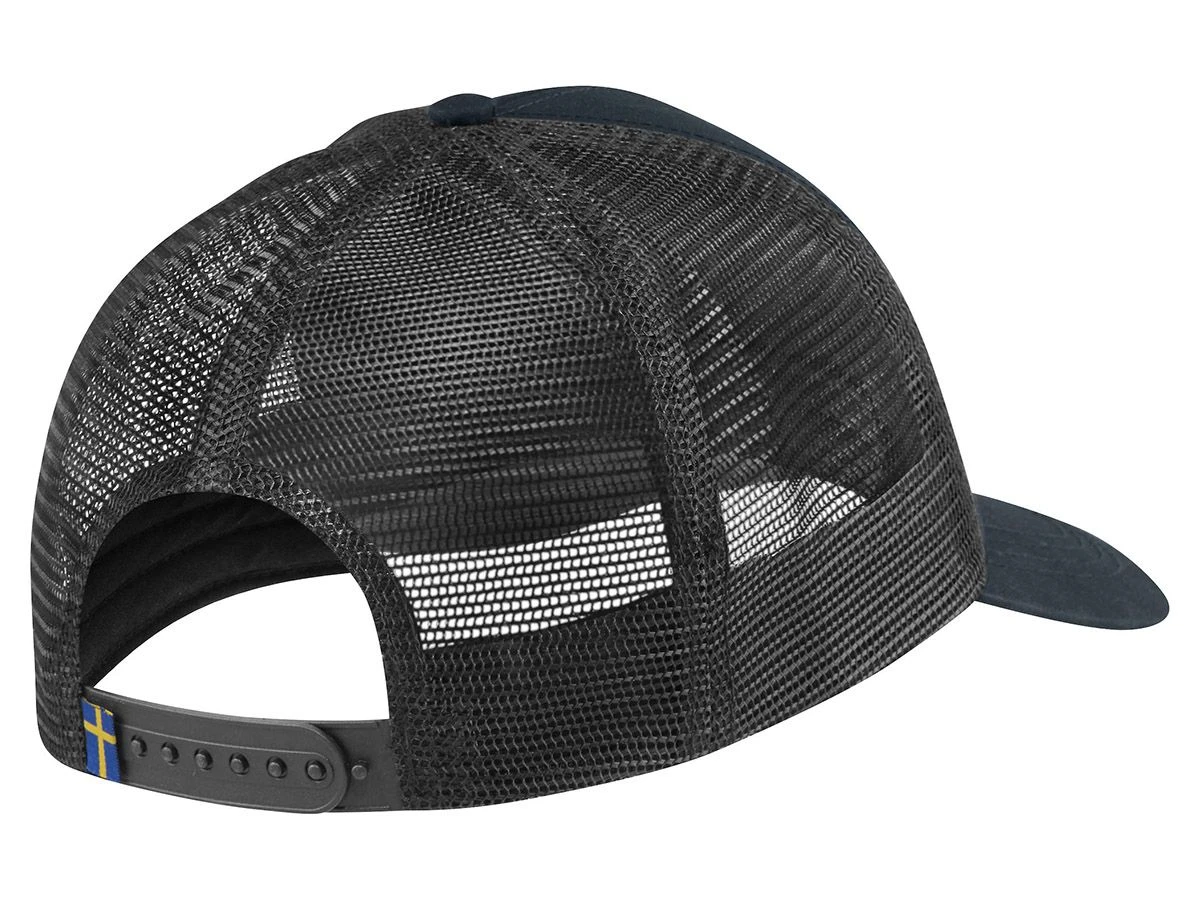 De trucker pet heeft een hoge voorkant van G-1000 Eco, terwijl de rest van gerecycled polyester is gemaakt. De pet heeft een embleem van Fjällräven op de voorkant en de maat kan eenvoudig worden aangepast met een gesp aan de achterkant.