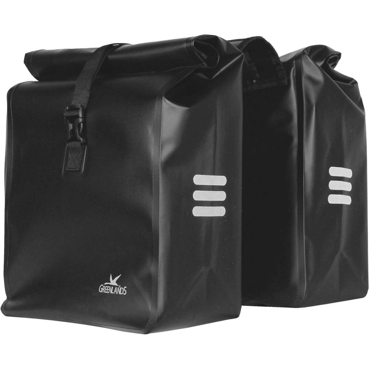 De Greenlands® waterproof fietstas is gemaakt van oersterk zeildoek. Deze 100% waterproof dubbele fietstas is verkrijgbaar in zwart en heeft een volume van 2 x 23L. Door de gelaste naden in combinatie met de rolsluiting zijn deze tassen 100% waterdicht. De tas is geschikt voor de meest gangbare bagagedragers en laten zicht handig monteren. De fietstassen zijn gemakkelijk te openen dankzij de snel sluiting. De fietstas is voorzien van reflecterende elementen zorgt hiervoor dat men beter zichtbaar is in het verkeer tijdens de donkere dagen.