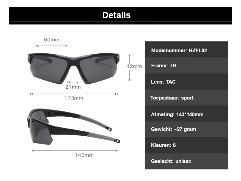 Deze Hikr half frame zonnebril heeft een ergonomische pasvorm die het de ogen rondom goed afdekt. Zo ben je verzekerd van optimale bescherming van je ogen, uit alle hoeken.