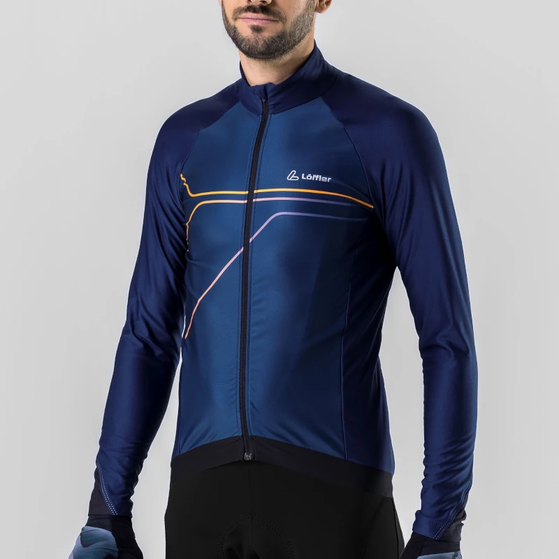 Het Loeffler wielrenshirt lange mouwen M Bike L/S Jersey Conflux Hotbond® RF – Donker Blauw is gemaakt van thermisch binnenvelours wat een zeer elastisch functioneel materiaal met uitstekende dwars- en lengteelasticiteit is. Het materiaal behoud de vorm en bied maximale bewegingsvrijheid voor een aangenaam draagcomfort. Thermisch binnenvelours is aan de binnenkant licht opgeruwd, warmte-isolerend, ademend, sneldrogend, robuust en onderhoudsvriendelijk. En multi-elastisch voor de perfecte pasvorm.