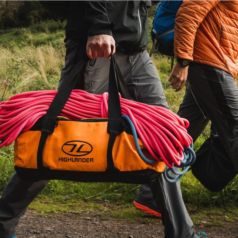 DeHighlander sporttas Storm Kitbag – 45 liter – Heavy Duty is een 45 liter sporttas uit de nieuwe collectie van Highlander de Storm Kitbags. De tassen zijn leverbaar in meerdere maten. Het gebruikte tarpaulin (zeildoek) is een zwaarder materiaal en samen met de webbing geeft dit de tas extra stevigheid voor intensief gebruik en bestendig tegen de diverse weertypes.