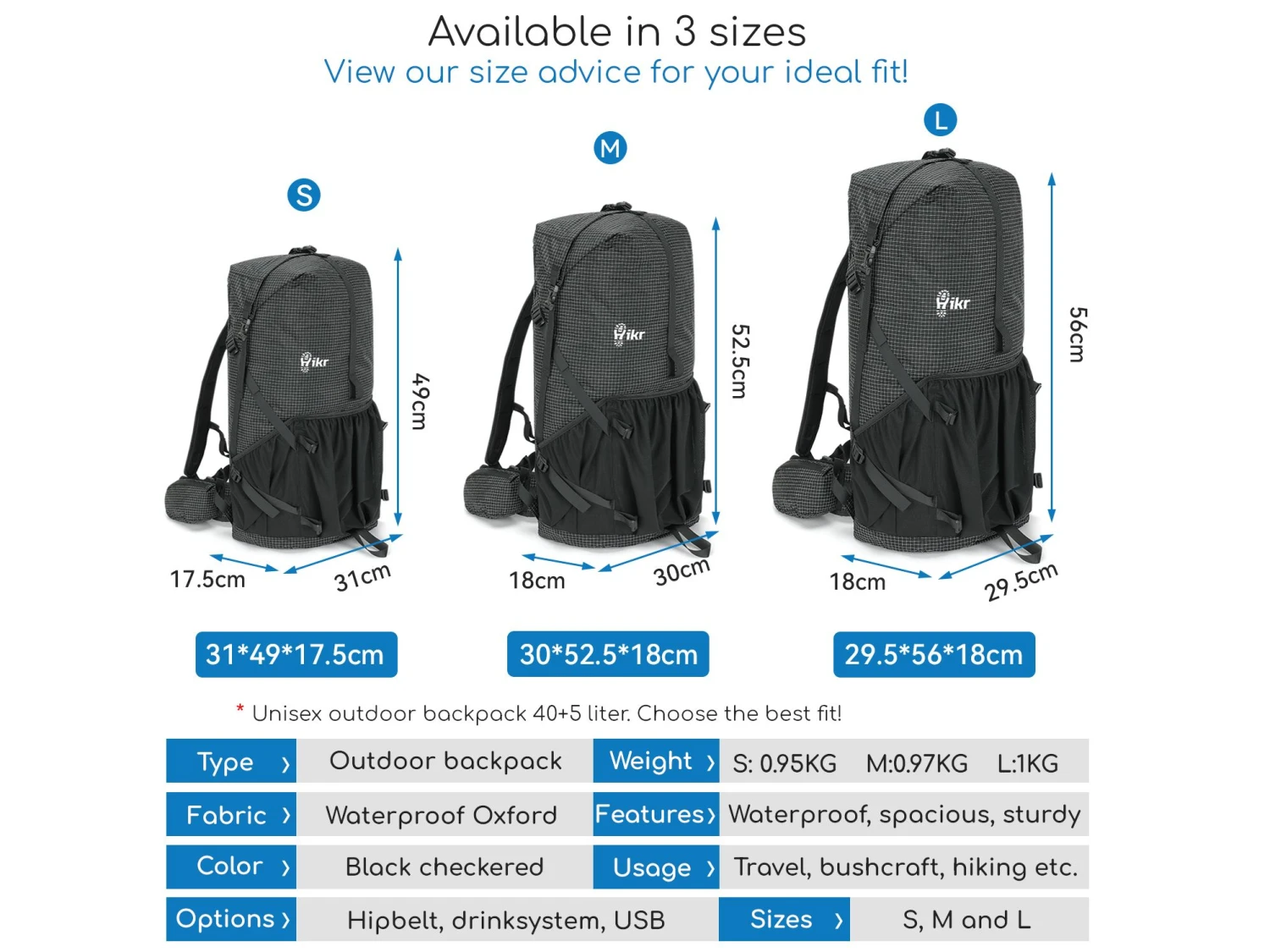 De Hikr backpack is jouw betrouwbare compagnon voor elk avontuur, groot of klein. Of je nu een dagtocht maakt door de natuur of een meerdaagse expeditie aangaat, deze rugzak is ontworpen om je vrijheid en comfort te bieden. Met drie verschillende lengtematen, een ultralicht ontwerp en een ergonomische pasvorm, sluit de Hikr backpack perfect aan op je lichaam en zorgt hij voor optimaal draagcomfort, ongeacht de duur of intensiteit van je avontuur. Je merkt nauwelijks dat je hem bij je draagt, zelfs tijdens lange expedities.Met een pakvolume van 40 liter (uit te breiden tot 45 liter) biedt de Hikr backpack genoeg ruimte voor al je essentiële uitrusting. Deze Hikr backpack combineert eenvoud, veelzijdigheid en betrouwbaarheid in één krachtig ontwerp. Het is dé backpack die met je meebeweegt, je ondersteunt en je nooit in de steek laat. Een absolute must-have voor iedere avonturier!