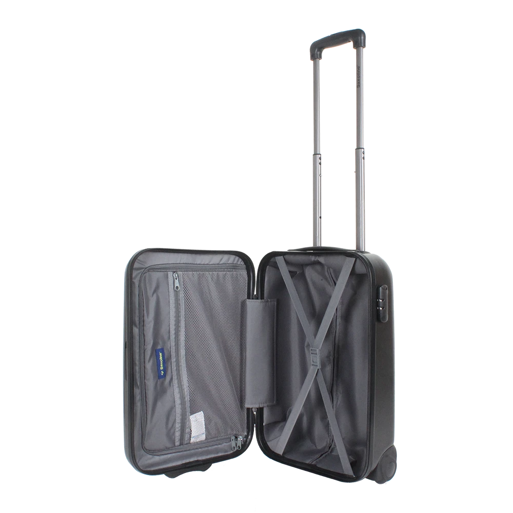 Wie zegt dat handbagage saai moet zijn? Niet Saxoline! Onze handbagage koffer is niet alleen praktisch, maar ook hilarisch. Je zult de ster van het vliegveld zijn, terwijl anderen jaloers naar je kijken met hun saaie koffers.Deze trolley heeft ook een slimme indeling. De binnenkant is volledig gevoerd, zodat je spullen zich als koninklijke gasten voelen. En met het tussenschot, binnenvakken en bagagebanden kun je je spullen georganiseerd opbergen. Geen gedoe meer met een chaos van sokken en ondergoed, alles heeft zijn eigen plekje. En het beste van alles? Het tussenschot kan worden vastgemaakt, dus je spullen blijven netjes op hun plek, zelfs tijdens de meest turbulente vluchten.Dus waar wacht je nog op? Ga voor de handbagagekoffer die niet alleen praktisch is, maar ook een glimlach op je gezicht tovert. Met Saxoline ben je klaar om de wereld te veroveren, met een vleugje humor en stijl!