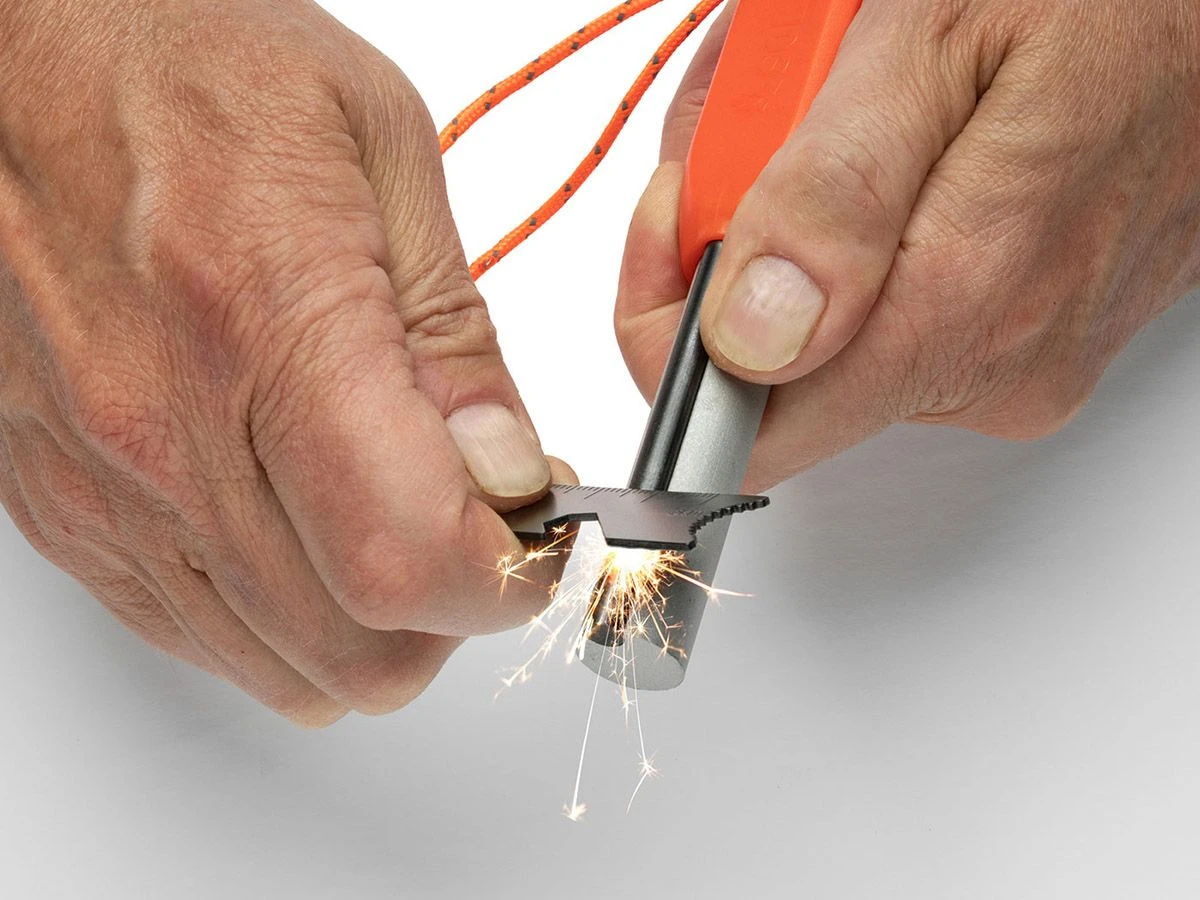 Met de meegeleverde schraper kun je krullen van de staaf magnesium afschrapen, deze kun je vervolgens aansteken met een vonk van de geïntegreerde Firesteel. Magnesium brand heet, hierdoor is het ideaal om een vuur te starten. De staaf is groot genoeg om honderden vuren te starten.