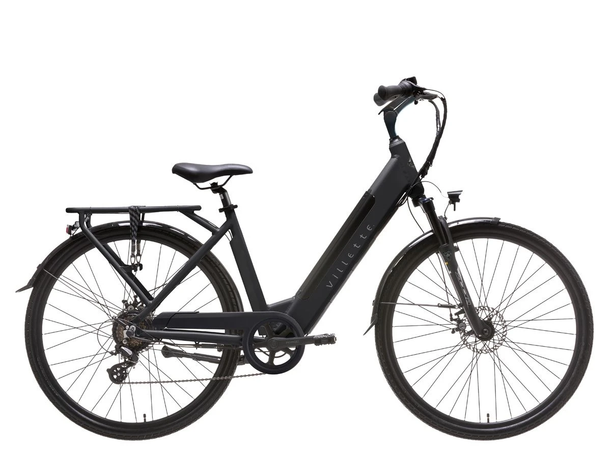 Kies een van de 7 versnellingen met de draaigreep rechts aan het stuur, bepaal welke trapondersteuningsstand u wilt gebruiken en selecteer deze op het LCD display bij uw linkerhand, en geniet van uw fietstochtje. De geveerde voorvork vangt hobbels in het wegdek op, net als het comfortabele zadel. Met de Villette l’ Amant heeft u een goed uitgeruste elektrische fiets in handen. Veel waar voor uw geld, een e-bike waarmee het heerlijk toeren is, maar die ook geschikt is voor ritjes naar de stad of voor woon-werk verkeer. (De fiets wordt zonder slot geleverd, wij raden u aan een ART gekeurd slot aan te schaffen).