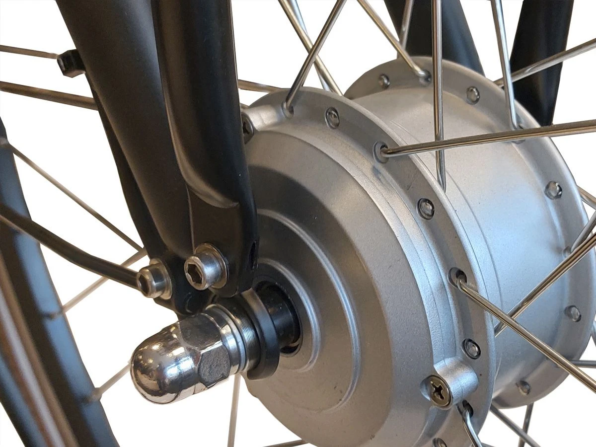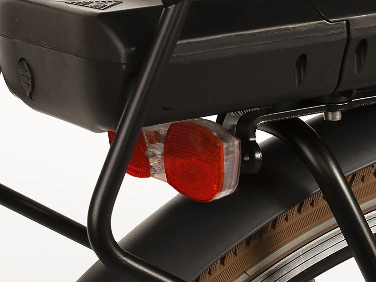 Een stoere,degelijke en zeer veelzijdige stadsfiets,dat is deze Villette l’ Urban. Enerzijds is het een transportfiets met een stevig voorrek en de looks van een traditionele bakkerfiets,anderzijds zit er een Shimano Nexus 7 naaf met rollerbrake in het achterwiel en een sterke motor in het voorwiel,zodat je er gerust lange ritten mee kunt maken,waarbij je ook een heuveltje of winderige dijk mee kunt pakken. Je kunt er in totaal 130 kilo gewicht mee vervoeren. De elektrische ondersteuning schakel je in met het LED display op het brede omastuur. Er zijn 3 ondersteuningsstanden en een meeloopfunctie voorhanden.