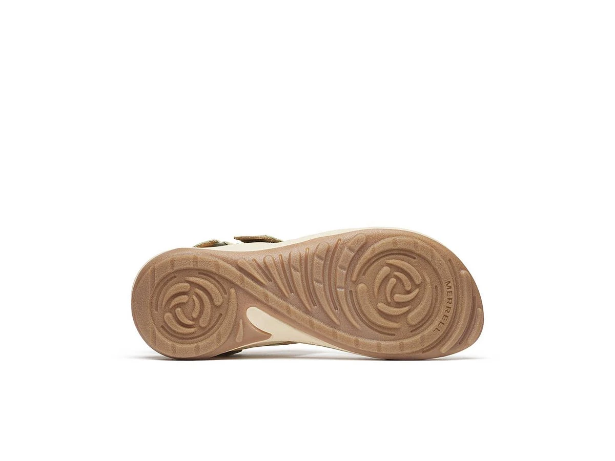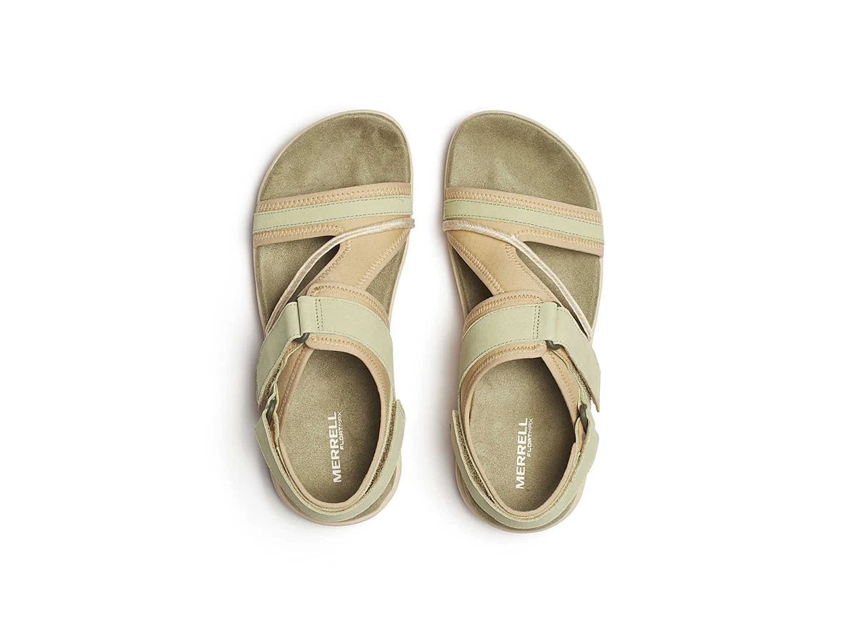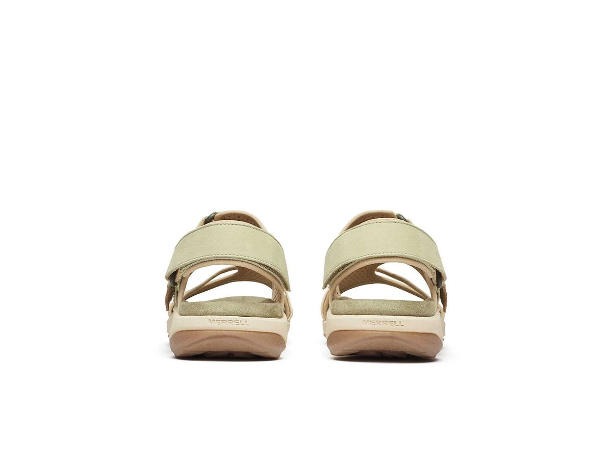 Deze Merrell Terran 4 Backstrap dames sandalen – Basil met extra aan- en uittrekgemak heeft verstelbare bandjes voor een aangepaste pasvorm, een rubberen buitenzool voor tractie en een voetbed van zacht schuim voor comfort de hele dag door.