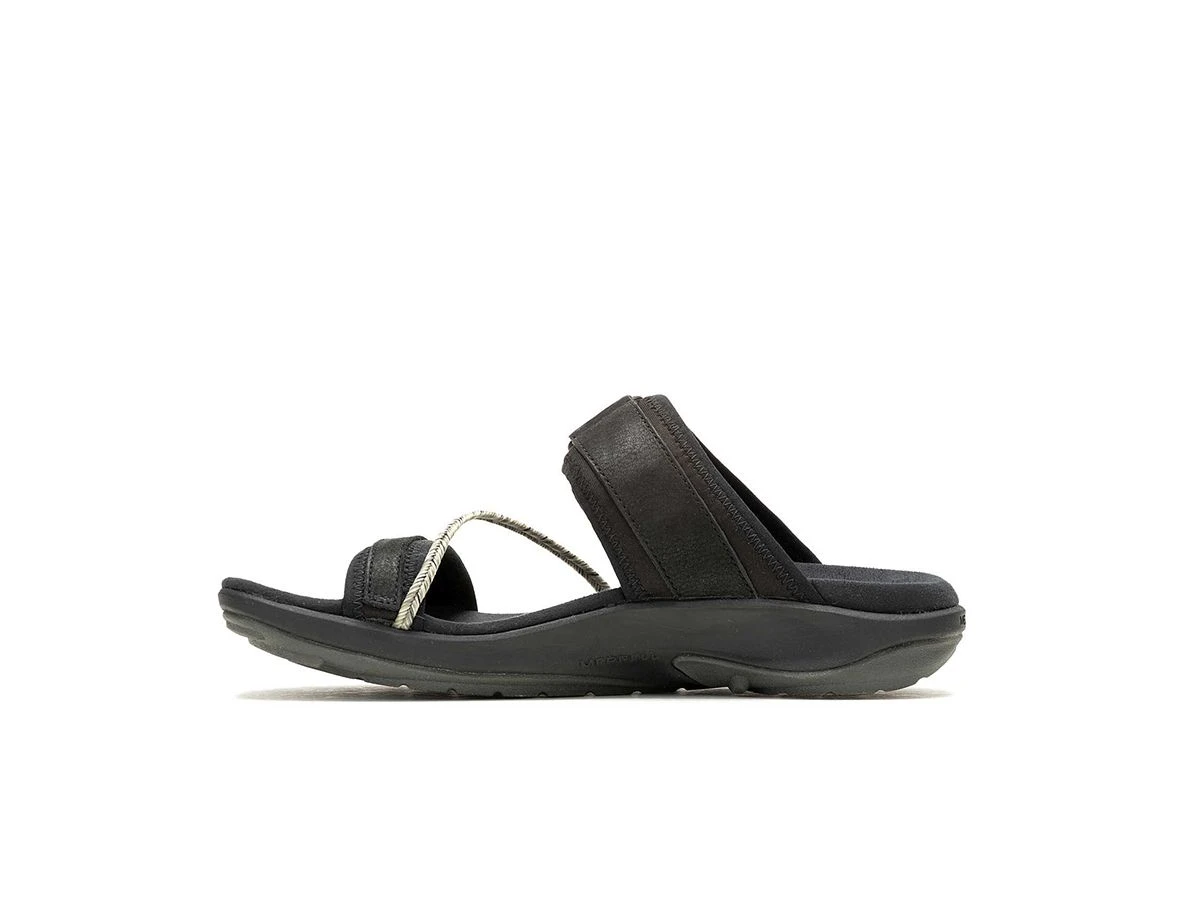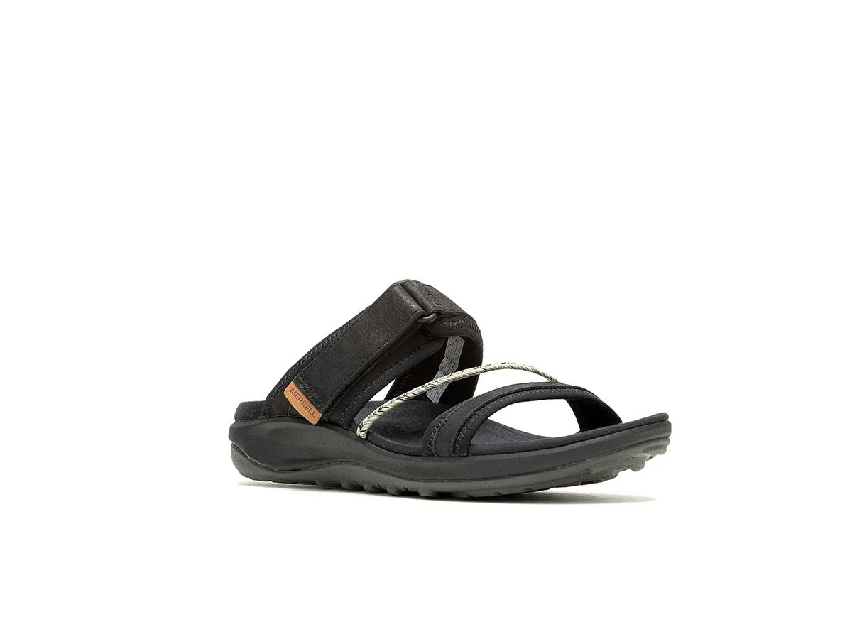 Simpel en uniek. Deze Merrell Terran 4 Slide dames sandalen – Black met extra aan- en uittrekgemak heeft verstelbare bandjes voor een aangepaste pasvorm, een rubberen buitenzool voor tractie en een voetbed van zacht schuim voor comfort de hele dag door. Deze sandaal wordt snel je favoriet voor bij je dagelijkse zomeroutfits.