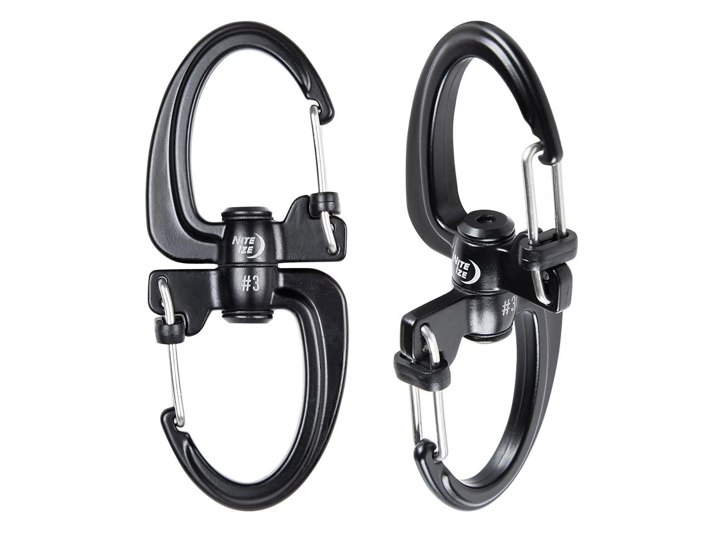 Verkrijgbaar in verschillende formaten. Kleine S-Biners zijn geschikt voor bijvoorbeeld het vergrendelen van rugzakken en koffers door de twee ritsen aan elkaar te verbinden. Grotere S-Biners Zijn ideal om bijvoorbeeld een lantaarn op te hangen. De S-Biner 360 is voorzien van twee plastic sliders om de haken te vergrendelen. Het product is gemaakt van RVS en heeft maximum draaggewicht van 15.9 kg.