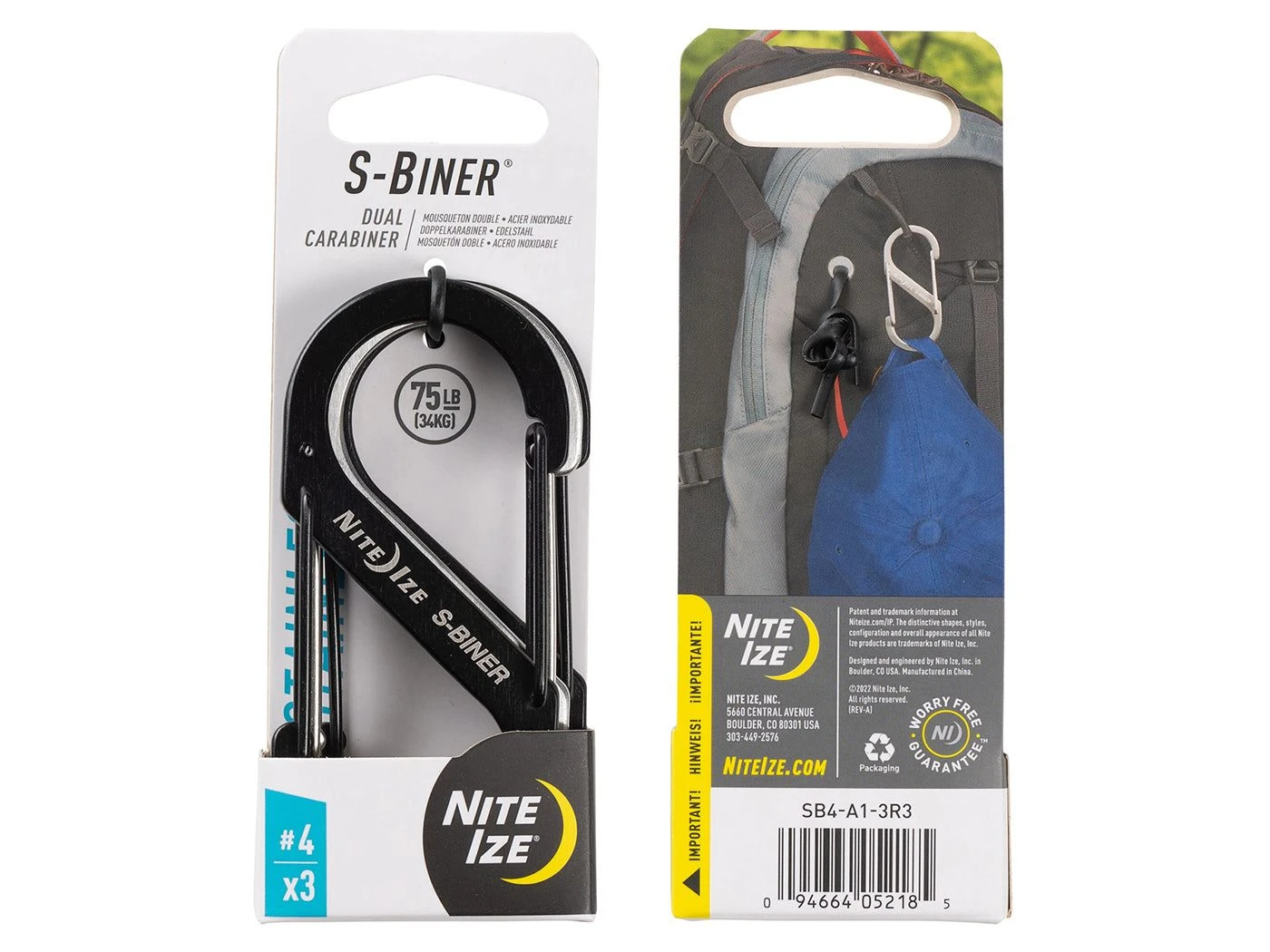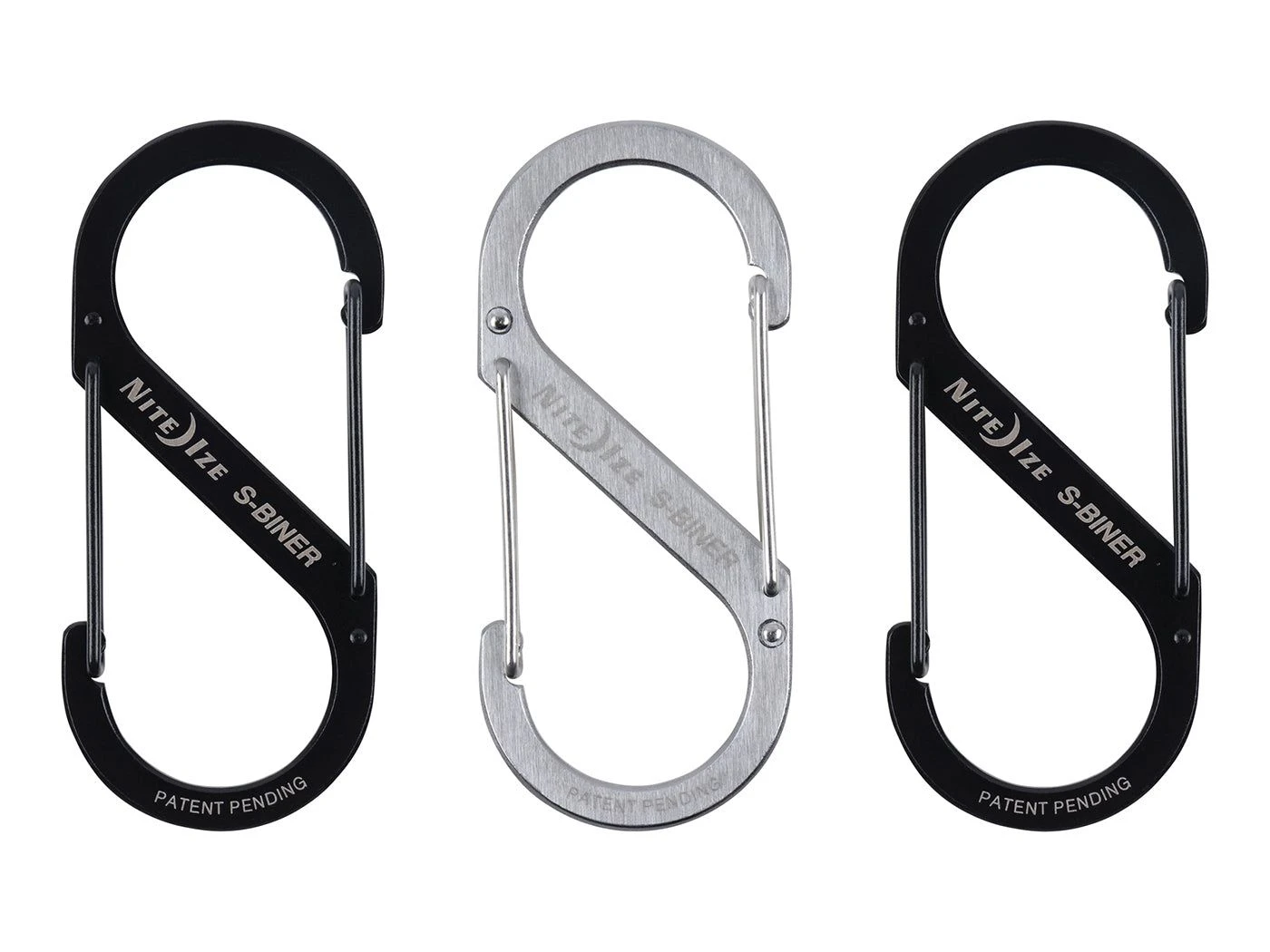 Set van 3 RVS S-Biners. Gebruik ze om al je spullen aan elkaar te verbinden of op te hangen. De mogelijkheden zijn eindeloos! Verkrijgbaar in verschillende formaten en varianten. De kleinere S-Biners zijn geschikt voor bijvoorbeeld het vergrendelen van rugzakken en koffers door de twee ritsen aan elkaar te verbinden. En de grotere S-Biners kan je gebruiken om een lantaarn op te hangen.
