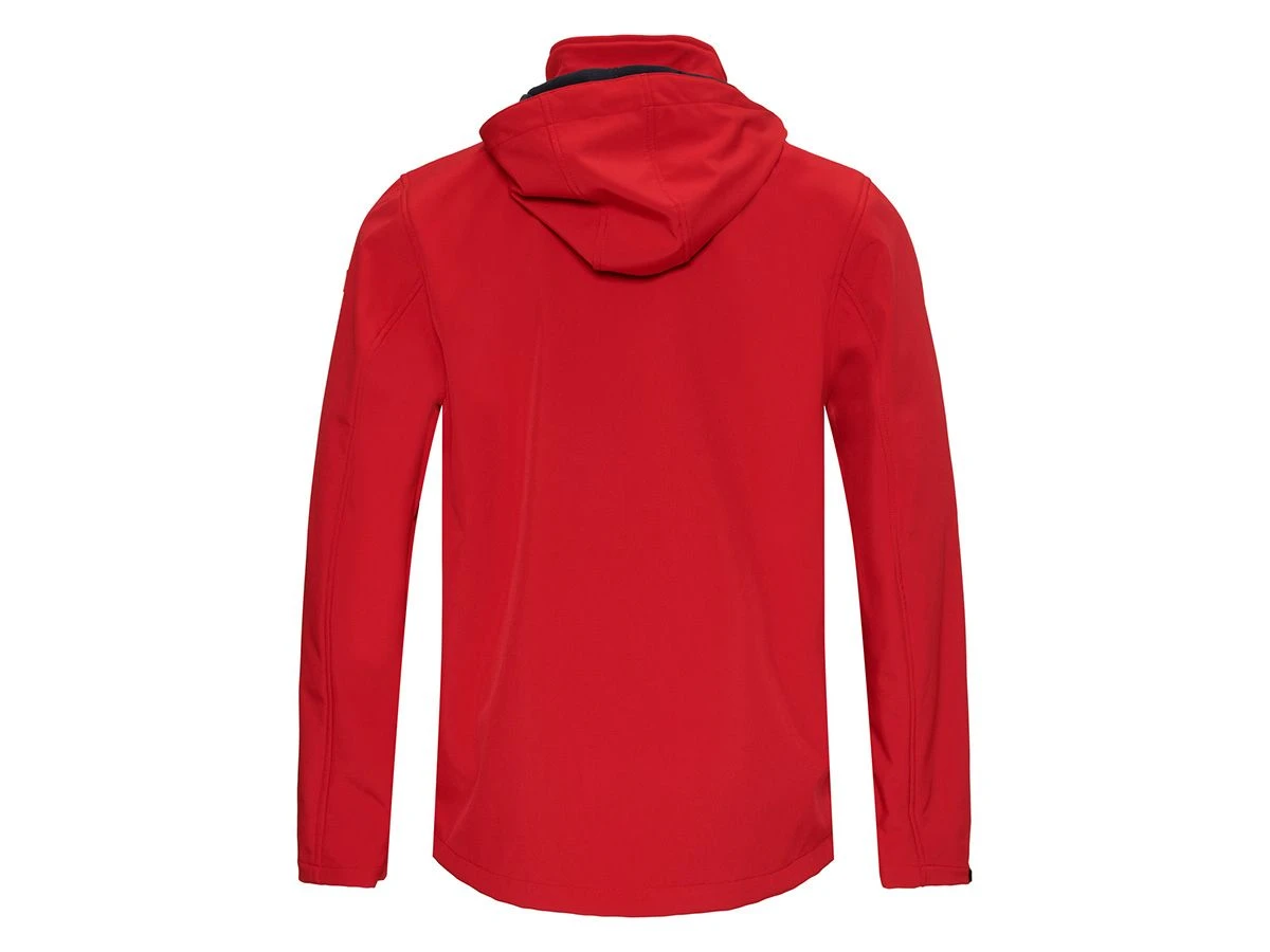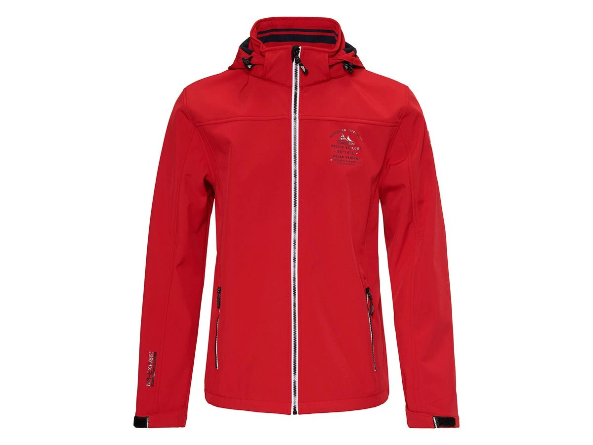 De jas is gemaakt van 94% polyester en 6% elastaan en beschikt over een opstaande kraag met doorlopende ritssluiting, de capuchon is verstelbaar en afneembaar. De Trond heeft een fleece binnenvoering die zowel voor extra warmte als comfort zorgt. De softshell jas is gemaakt van ademend, 4-way stretch en waterafstotend materiaal. Aan het uiteinde van de mouwen zit klittenband, waarmee voor een goede pasvorm kan worden gezorgd. De Jas heeft twee zakken met ritssluiting voor het opbergen van kleine spulletjes. De jas heeft een mooi opvallend gekleurde rits.