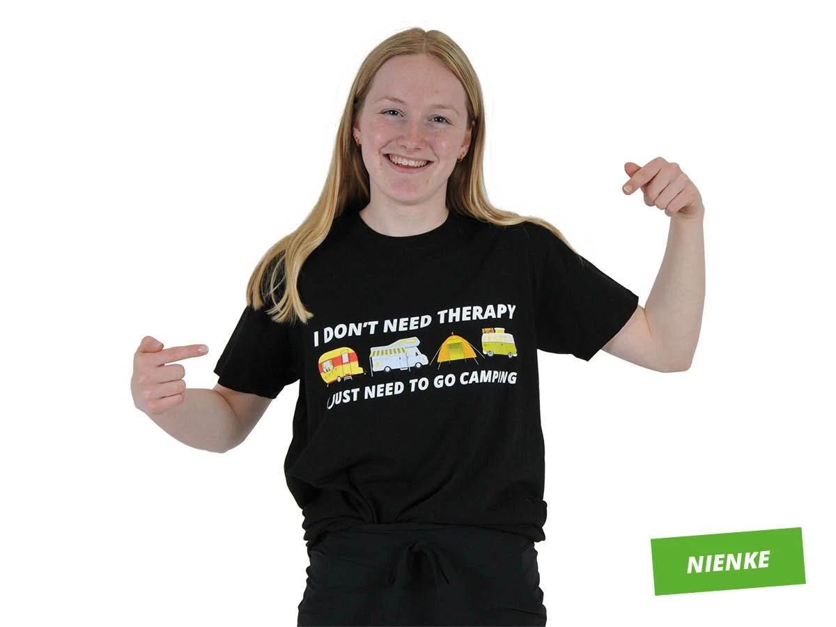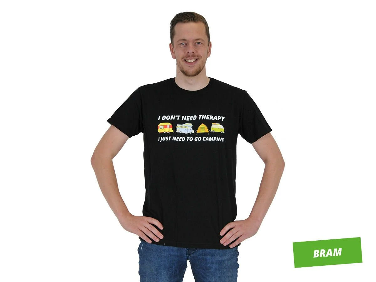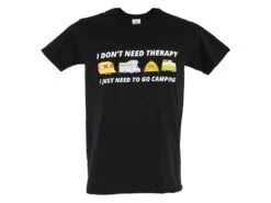 Op de camping heerlijk barbecueën of even op bezoek bij de buren voor een kopje koffie, het maakt niet uit wat je doet – als je het maar in stijl doet! Het T-shirt heeft op de voorkant een print met quote die 100% bij het campingleven past: “I don’t need therapy”.