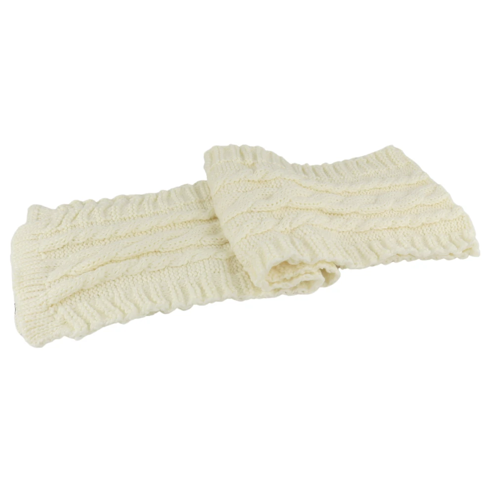 De sjaal is gebreid met vlechtpatroon. De kleur van de sjaal is gebroken wit. De sjaal heeft een lengte van 155 cm. Dit maakt de sjaal lang genoeg om goed om je nek heen te slaan.