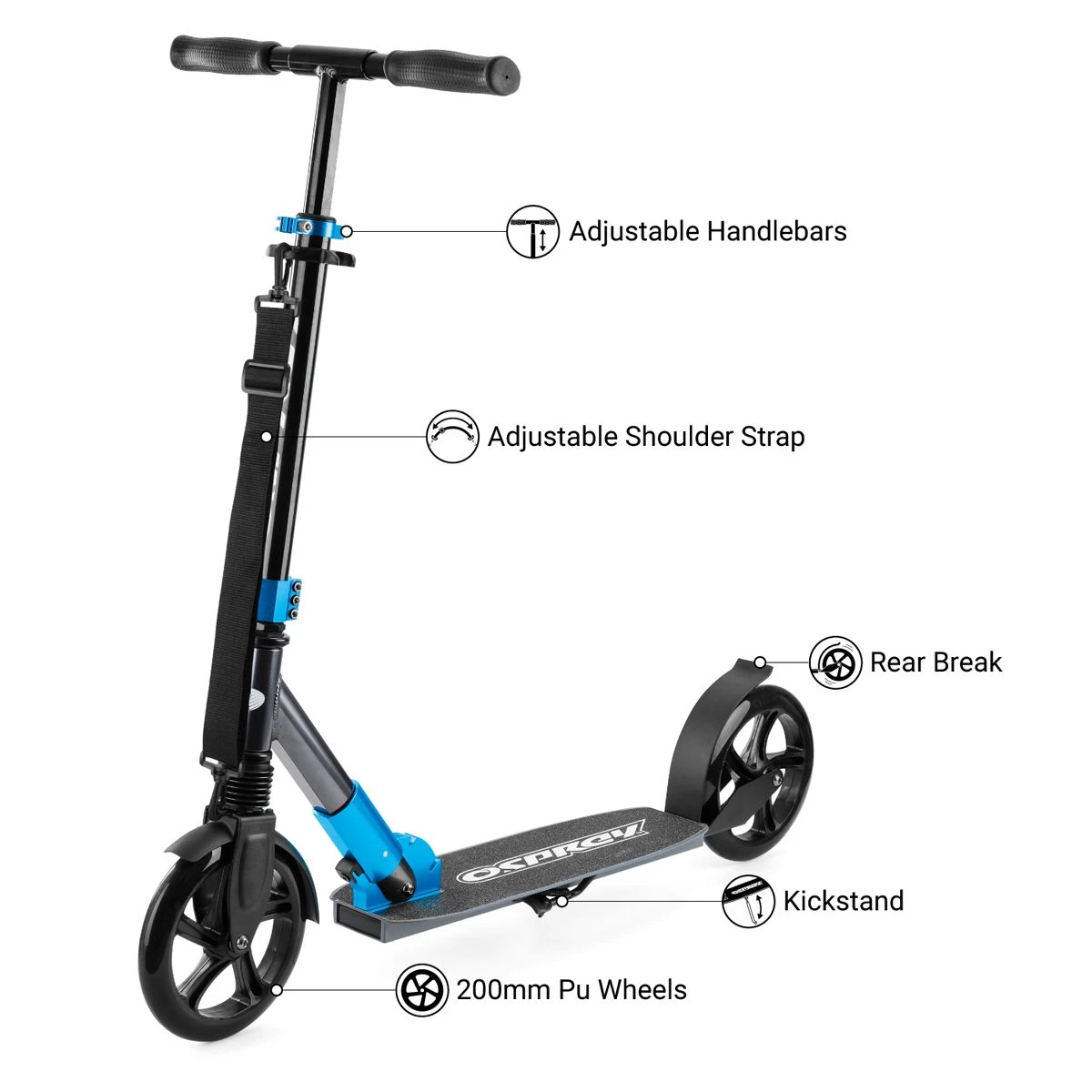 Deze Osprey big wheel scooter in de kleur koper heeft een aluminium frame en is uitermate geschikt voor de stad, het weekend, naar werk of naar school. Deze XS2 serie heeft 200mm grote PU wielen en schok absorbers. De scooter is erg makkelijk mee te nemen dankzij het opvouw mechanisme en de verstelbare schouderriem. De hoge kwaliteit zorgt voor veel comfort, een stabiele ligging en plezierige kilometers!