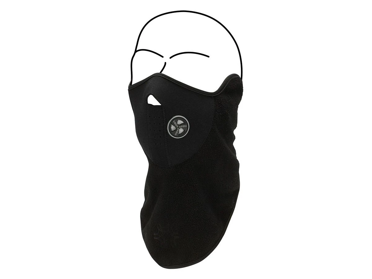 De gezichtsbeschermer heeft een neopreen mondkap en rubberen ventilatie openingen. De beschermer heeft een klittenbandsluiting in de nek.