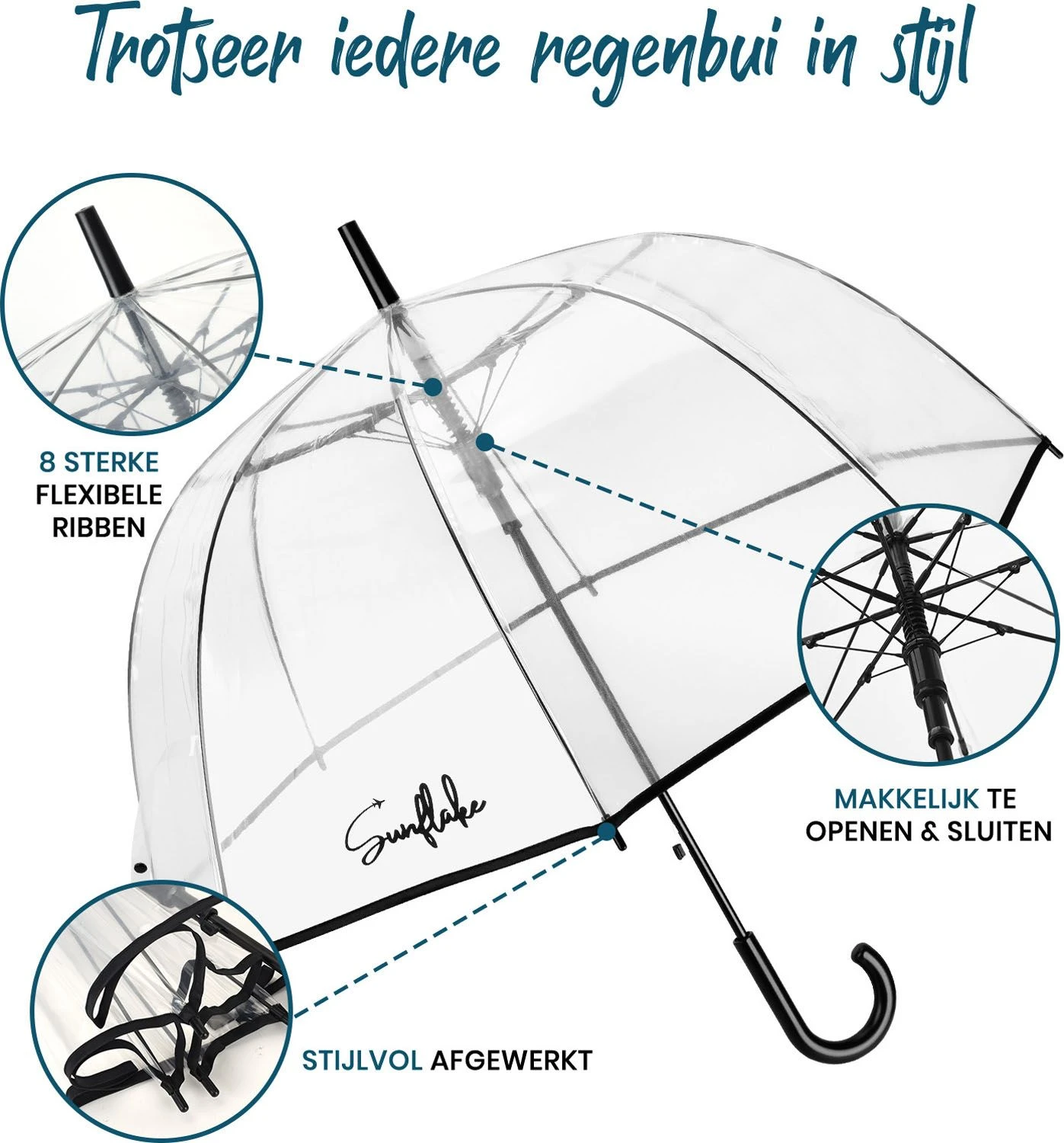 Blijf stijlvol, droog en beschermd, waar je ook gaat. Bestel vandaag nog jouw transparante paraplu.