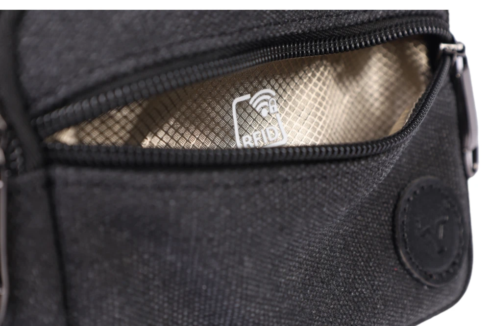 De tas meet 32x15x8 cm en heeft een band met een lengte voor een omtrek van 85 tot 128 cm en hiermee geschikt voor dames en heren. De vier afsluitbare vakjes zijn handig om al je kostbare vindbaar en veilig op te bergen. De waterafstotende binnen voering zorgt er voor dat bij een regenbuitje alles netjes droog blijft.